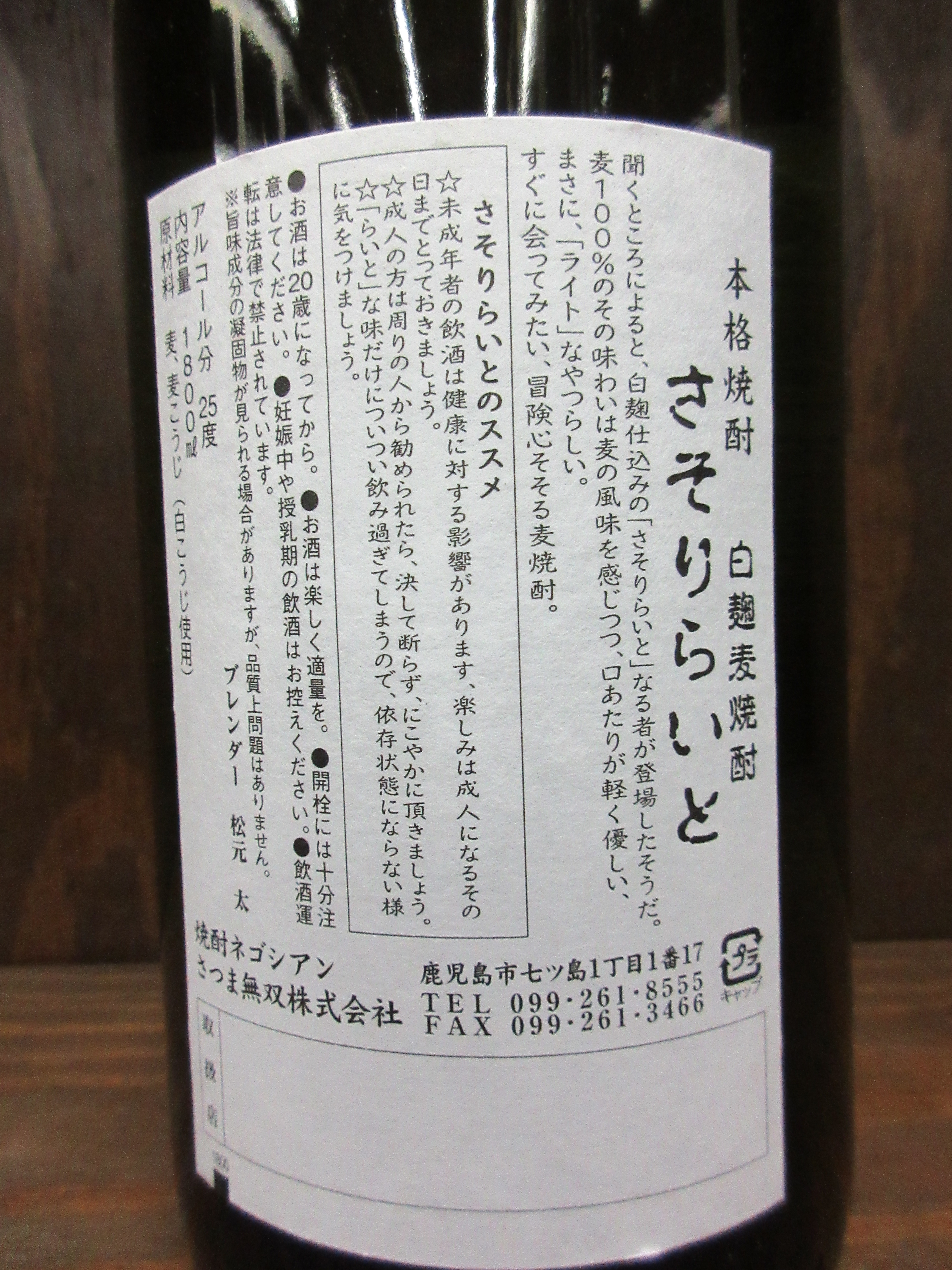 さそりらいと 白麹仕込み 麦焼酎 25度